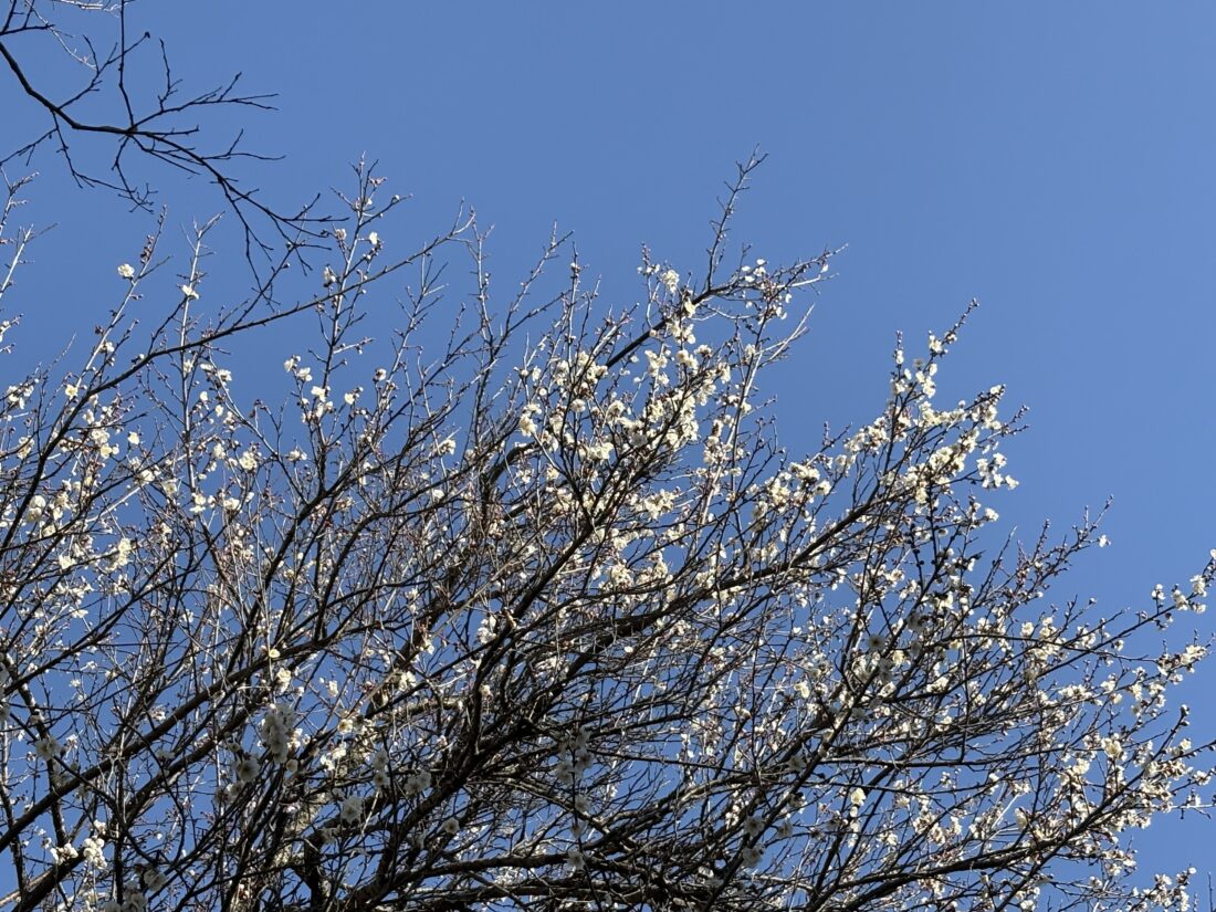 写真は、散歩中にメンバーさんが見つけた梅の花です。 木にとまるウグイスの姿も見られ、少し早い春の訪れを感じますね。